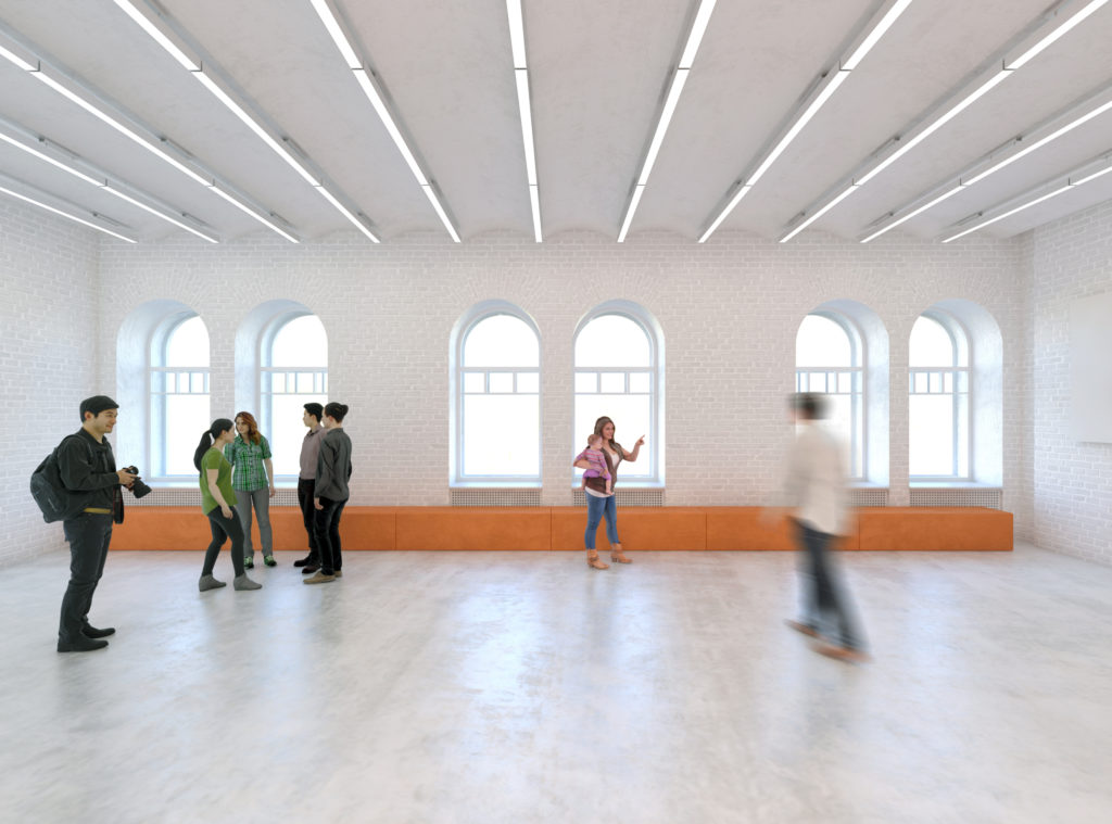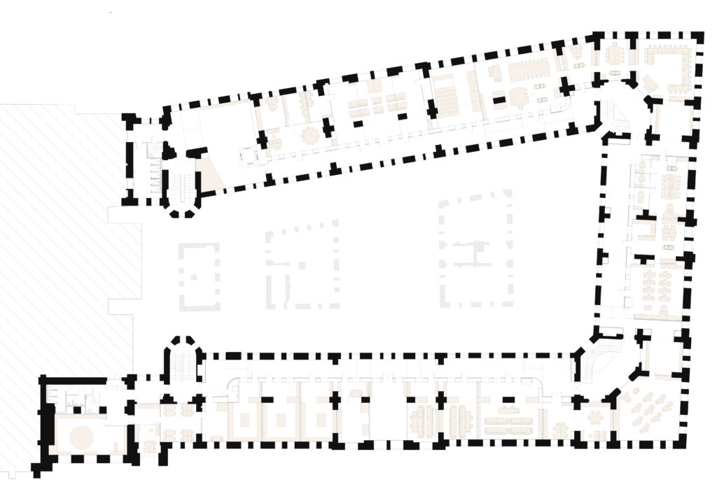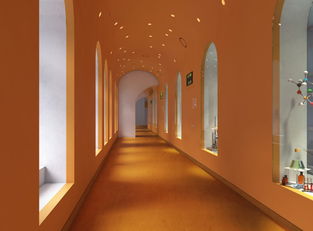 collection of inner spaces, including educational labs, infrastructural connecting spaces and recreational areas as well as an event hall and the science library.