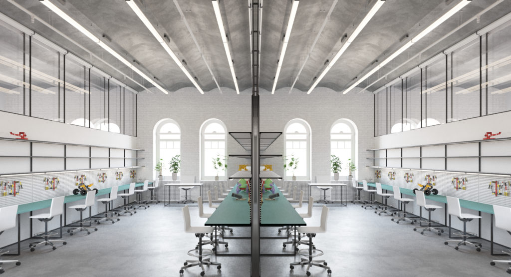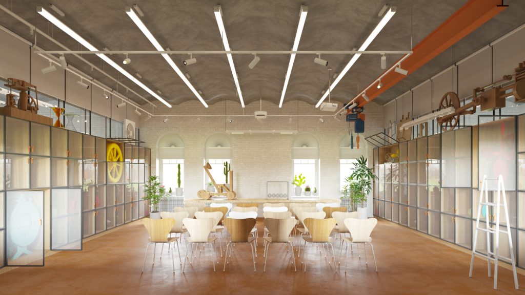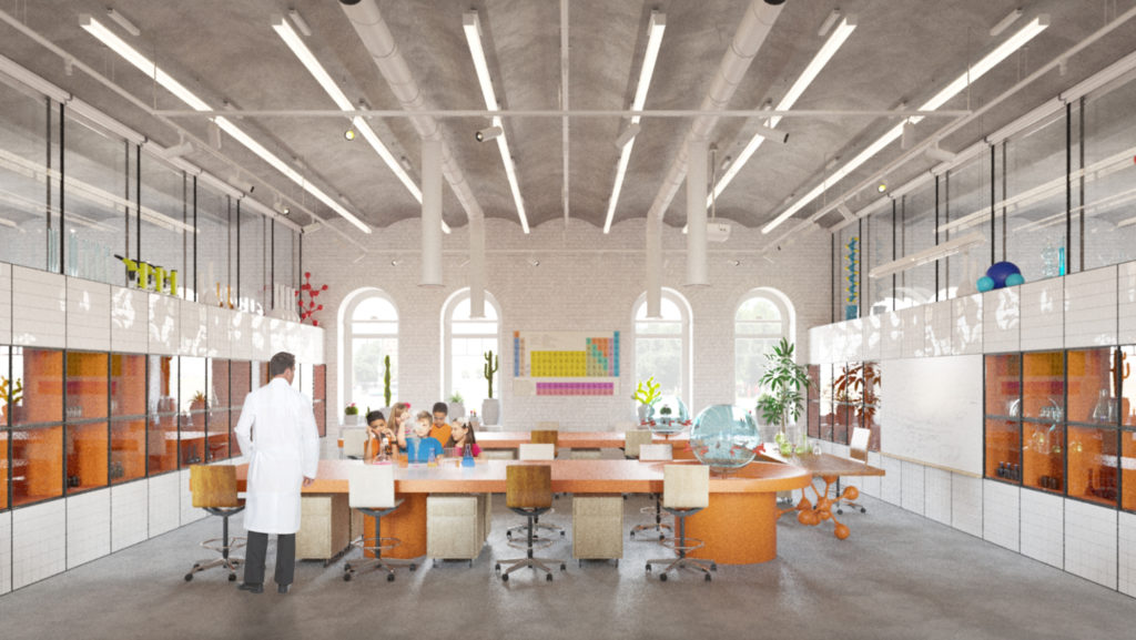 For a few months SVESMI team has been working in close partnerships with the lab directors, creating spaces both inspiring and safe for experiments in physics, biology, chemistry & robotics. The broad range of specific requirements has been processed by the designers, which resulted into highly customised space, lighting, storage, and furniture design for children and young adults.